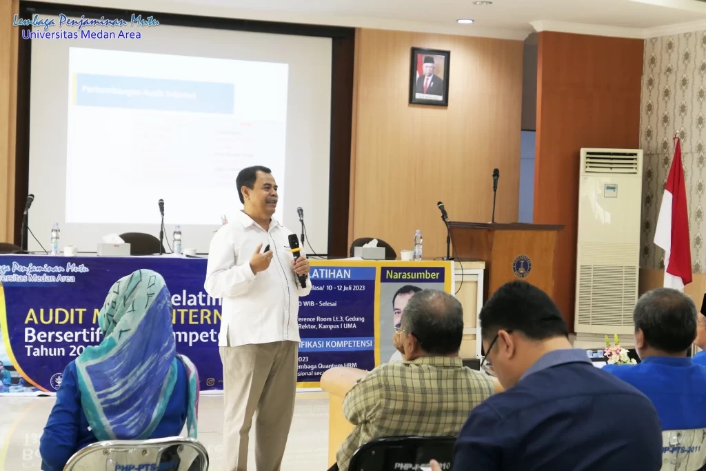 Mutu pendidikan merupakan hal penting dan harus menjadi perhatian bagi pengelola Perguruan Tinggi . Pengakuan terhadap mutu pendidikan tinggi  ditandai dengan peringkat akreditasi perguruan tinggi yang dikeluarkan oleh BAN-PT dan  LAM , atau Lembaga Akreditasi Internasional yang diakui oleh BAN-PT.  Universitas Medan Area telah berkomitmen untuk meningkatkan mutu pendidikannya, agar dapat berkontribusi terhadap daya saing bangsa. Evaluasi terhadap ketercapain standar yang ditetapkan oleh UMA harus dilakukan secara berkesinambungan dengan melakukan Audit Mutu Internal (AMI). Untuk meningkatkan kualitas AMI, diperlukan auditor yang memiliki wawasan tentang Sistem Penjaminan Mutu Internal  (SPMI) Perguruan Tinggi, Prosedur AMI dan kode Etik Auditor. Pada hari tanggal  10 – 12 Juli 2023  bertempat di Conference Room Prof. Dr. HA Yaqub Matondang, MA, Kampus I Universitas Medan Area, diadakan pelatihan bagi calon auditor dengan menghadirkan narasumber dari IPB yaitu Dr. Wonny Ahmad Ridwan, S.E., M.M. Pelatihan diikuti oleh seluruh fungsionaris UMA dan seluruh calon auditor.