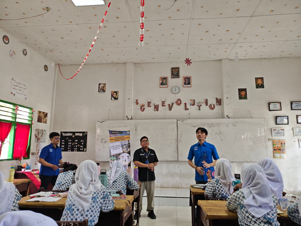 Kegiatan ini dirangkai dengan sosialisasi Fakultas Teknik UMA yang melibatkan fungsionaris fakultas, dosen, tim IT support, serta mahasiswa aktif. Dalam kesempatan tersebut, diperkenalkan enam Program Studi yang ada di Fakultas Teknik, yaitu Program Studi Teknik Sipil, Teknik Elektro, Teknik Mesin, Arsitektur, Teknik Industri, dan Teknik Informatika. Tim memberikan penjelasan mengenai kurikulum, fasilitas laboratorium, peluang magang, kerja sama industri, serta prospek lulusan di dunia kerja. Melalui kegiatan ini, diharapkan para siswa memperoleh motivasi dan gambaran yang lebih jelas dalam menentukan pilihan studi lanjut, serta semakin mengenal Fakultas Teknik UMA sebagai institusi yang adaptif terhadap perkembangan teknologi, dan berorientasi pada kebutuhan industri dan berwasanan lingkungan.